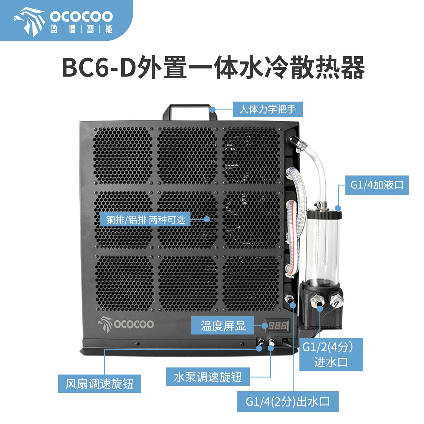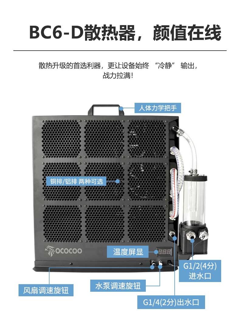 铜排/铝排两种材质可选,搭载强劲水泵|即插即用|散热出众。