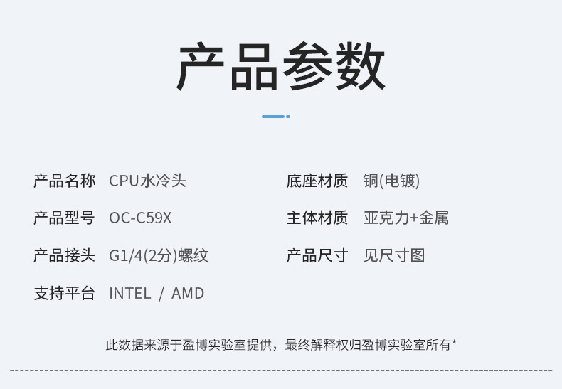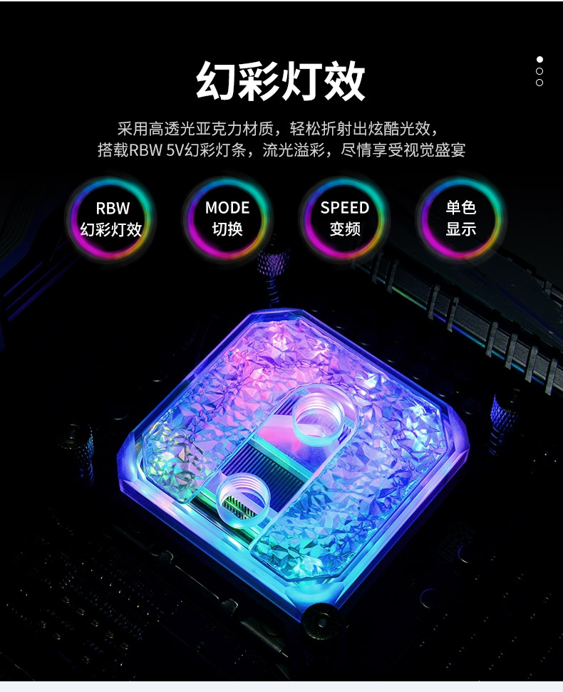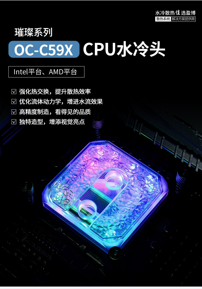 盈博 水冷头CPU散热 OC-C59X璀璨幻彩炫彩灯光,增添视觉亮点,Intel系列 AMD