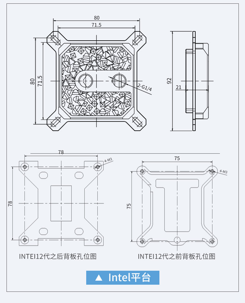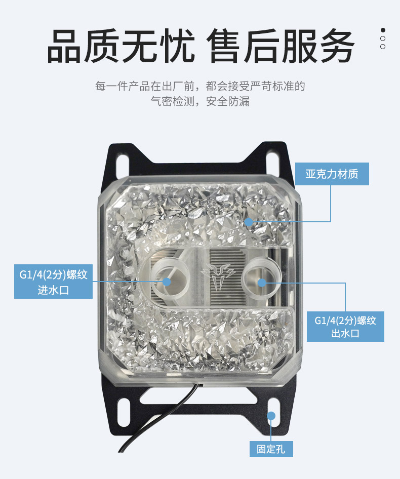 平台分体,支持11代12代13代14代等多卡具水冷,紫铜底板,强化热交换,提升散
