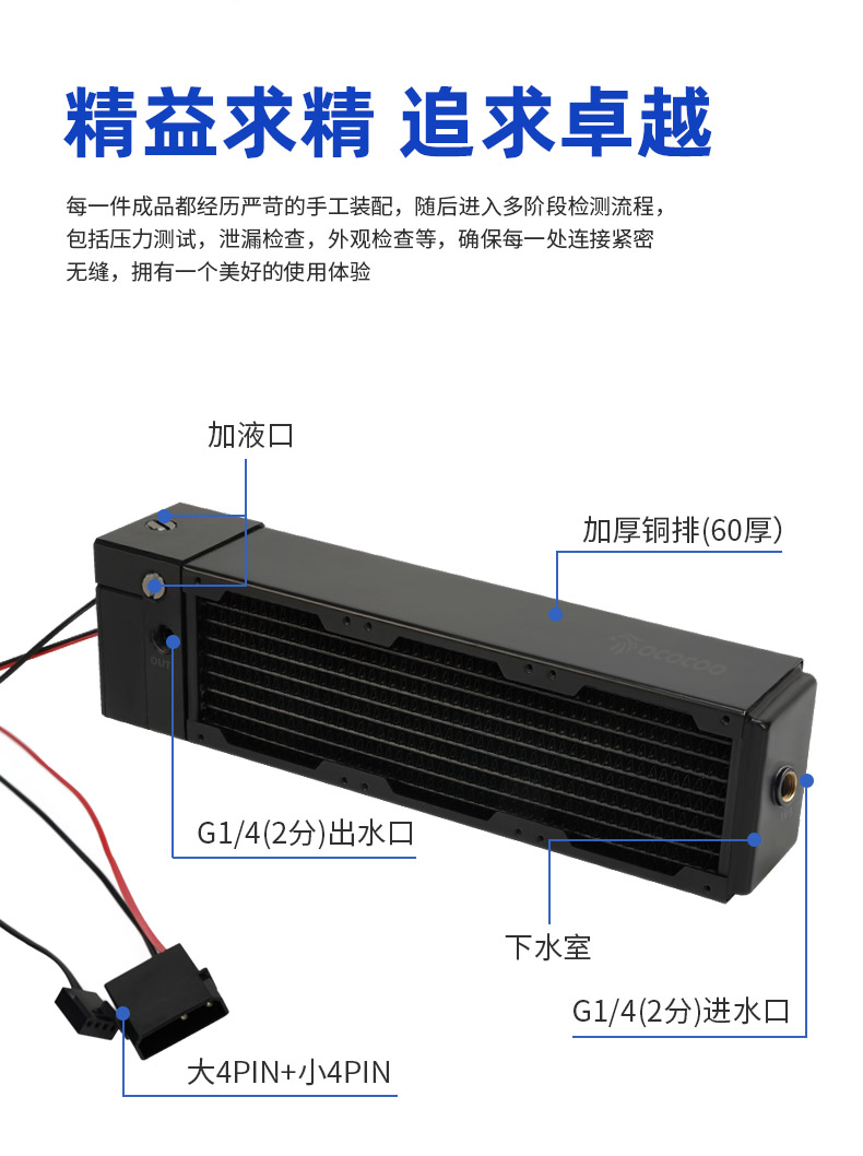 铜冷排为核心,融合集成式大功率静音水泵,实现散热效率与空间利用率
