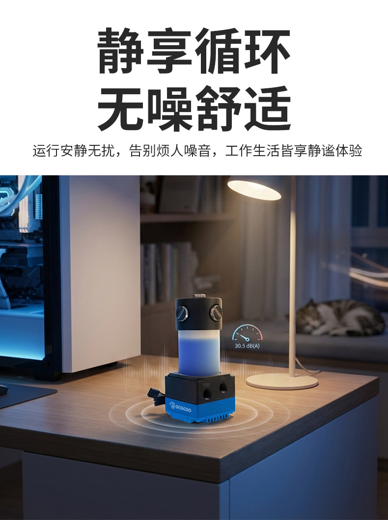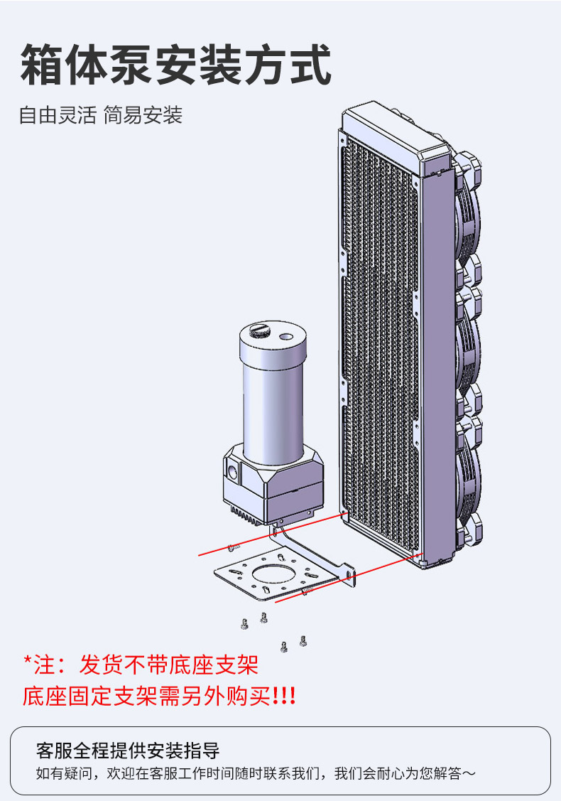 设计,适配激光仪器、AI模型散热等各行业散热,泵箱一体便捷安装,静音