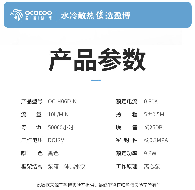 盈博H06D-N耐高温泵箱一体水冷散热循环泵防崩裂水冷泵激光仪器