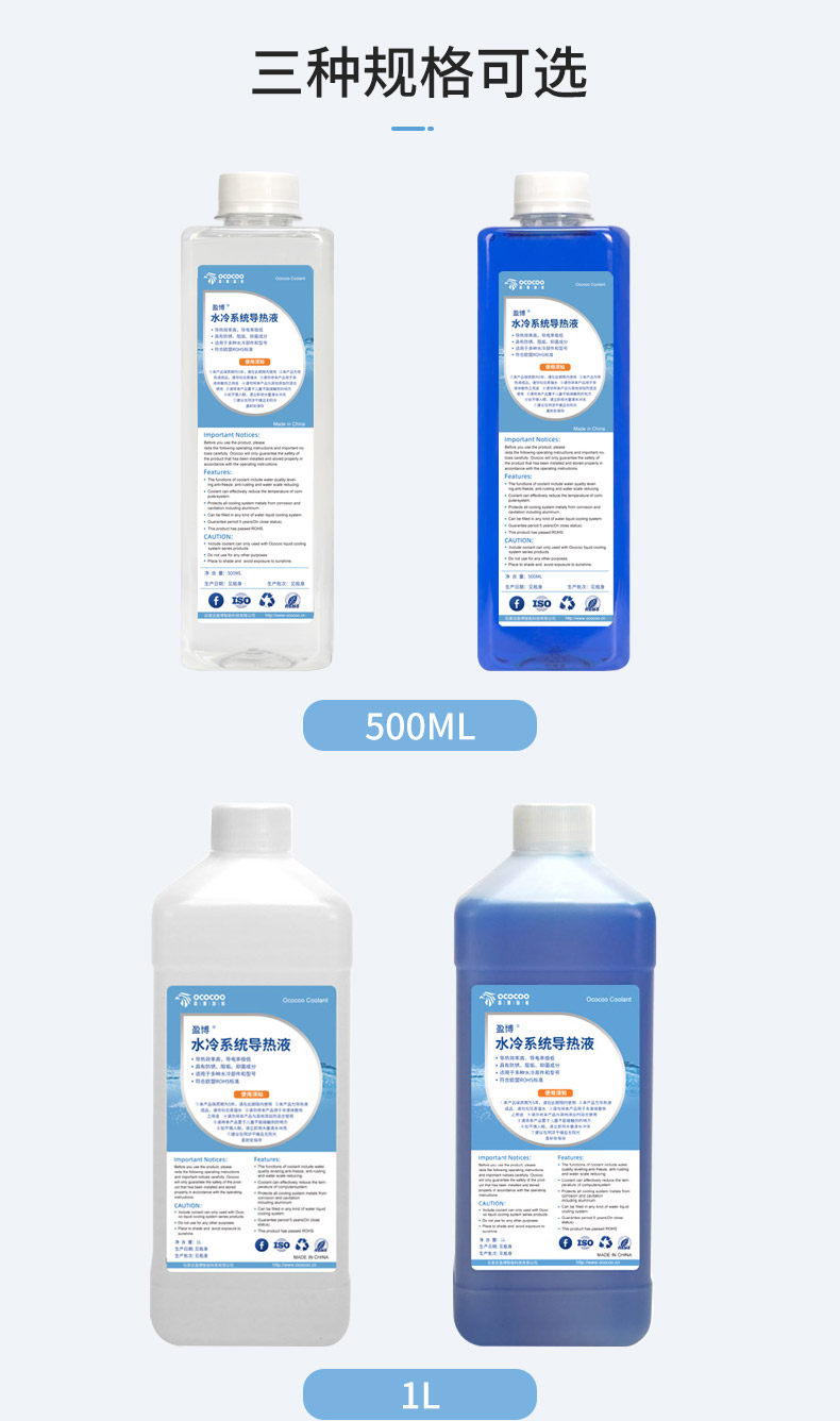 盈博工业500ml 1升5L大瓶装水冷导热液