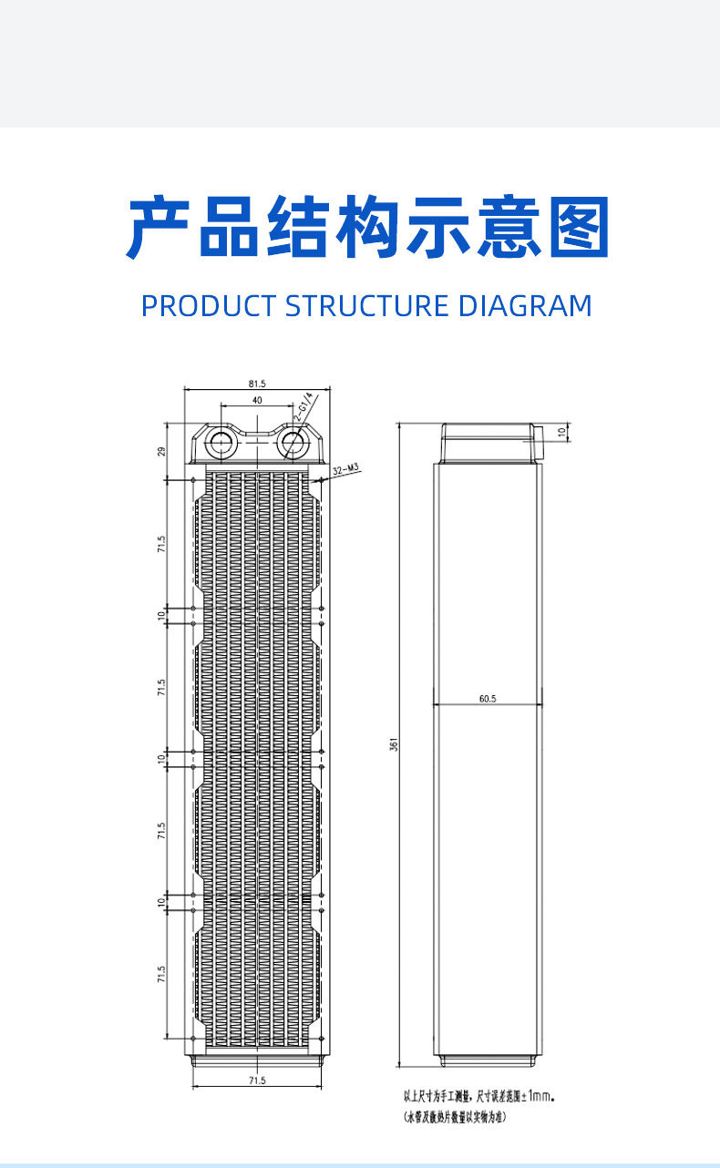 盈博80X4高性能60MM厚 铜排水冷排散热排双层1U/2U服务器厚排散热