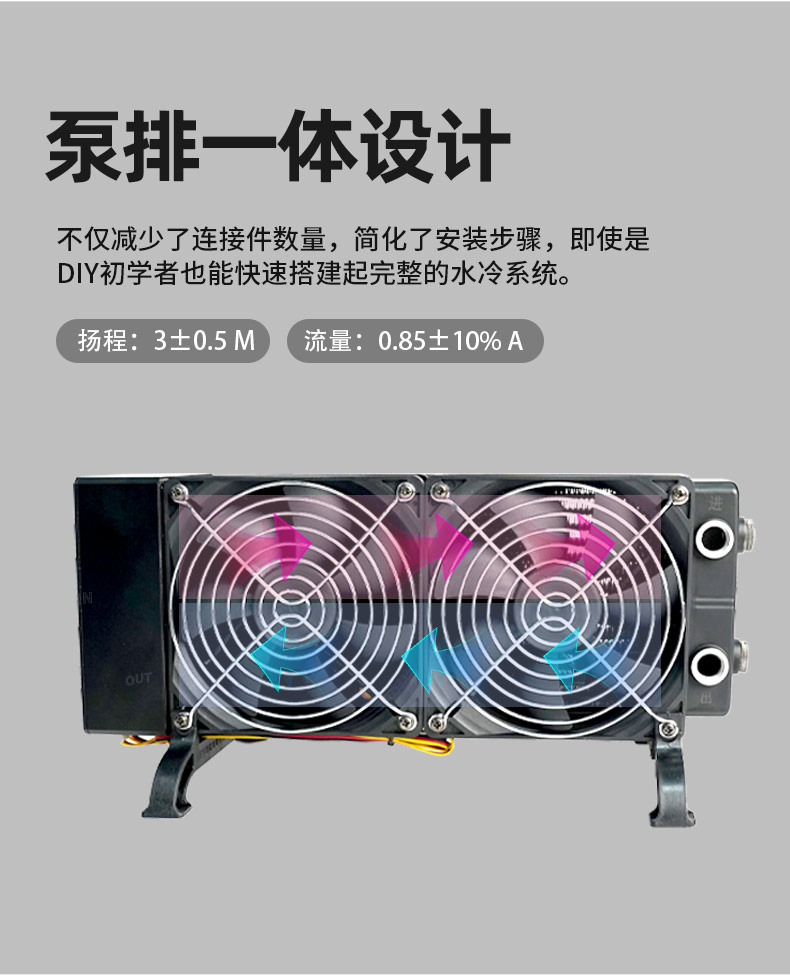 产品自带电源,实现即插即用功能,省去额外适配电源的麻烦,进一步降低使用门槛。无论是桌面主机升级,还是全新装机搭建,都能很好完成装配,让更多人享受水冷散热的进阶体验。