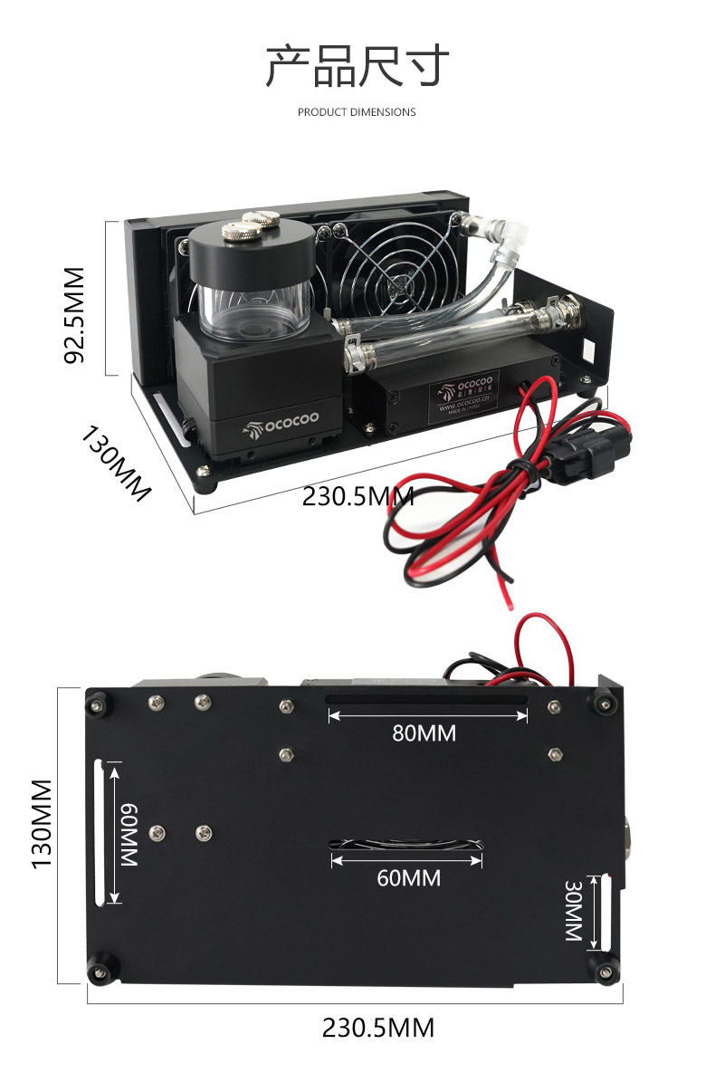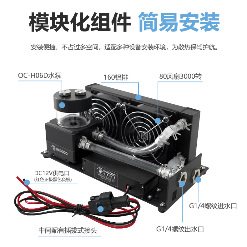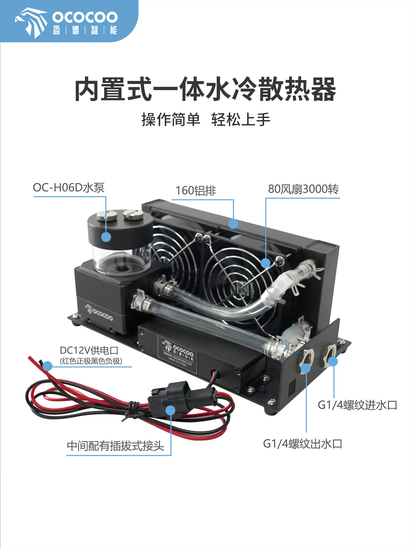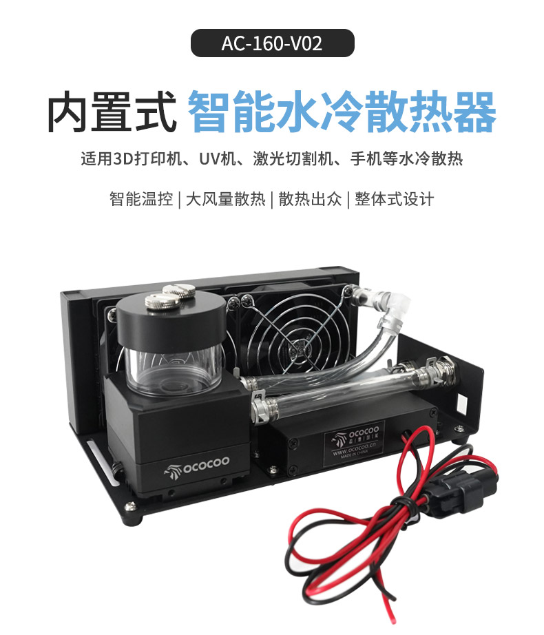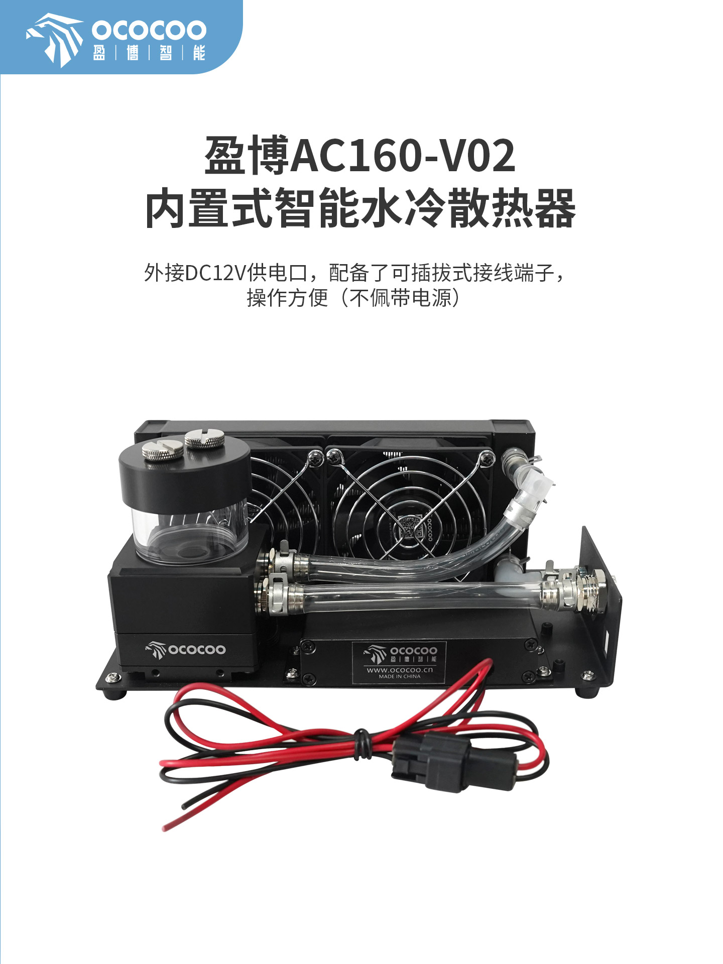 盈博电摩激光小型散热模组AC160-V02内置水冷散热泵排一体式套装