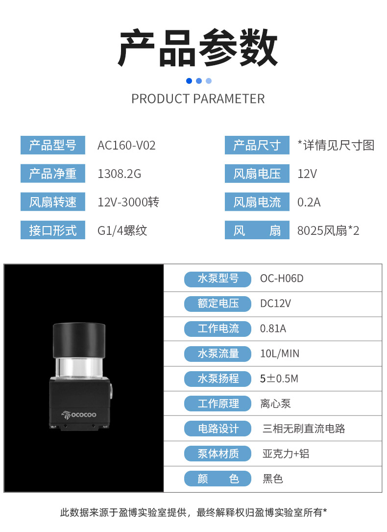 盈博小型散热模组AC160-V02内置水冷散热泵排一体式套装,