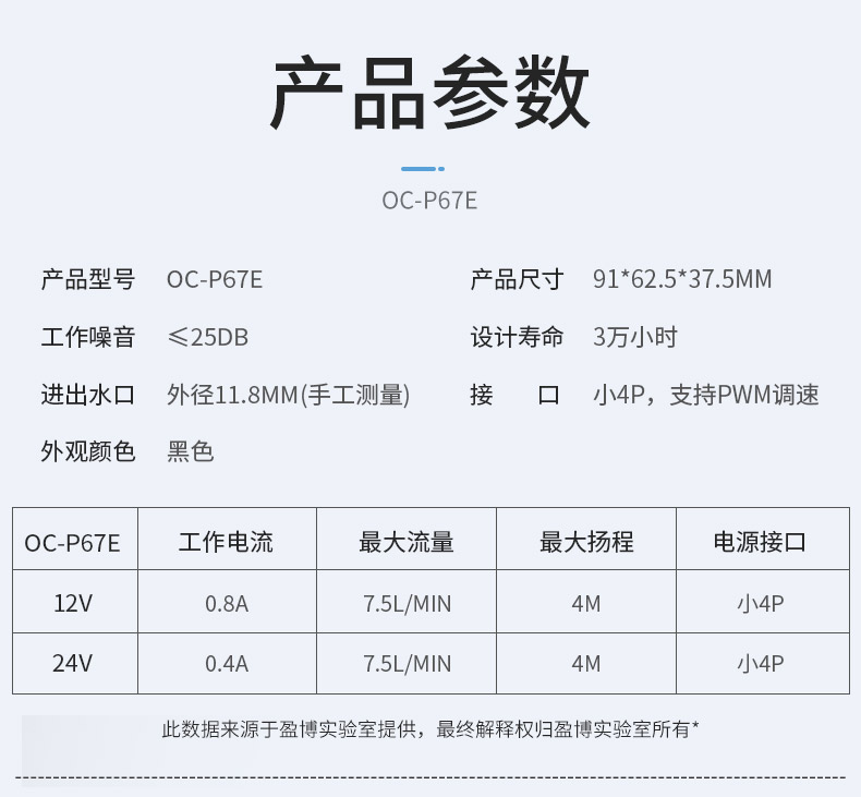 盈博OC-P67E水冷循环泵PWM调速工业激光美容仪器分体式散热水泵