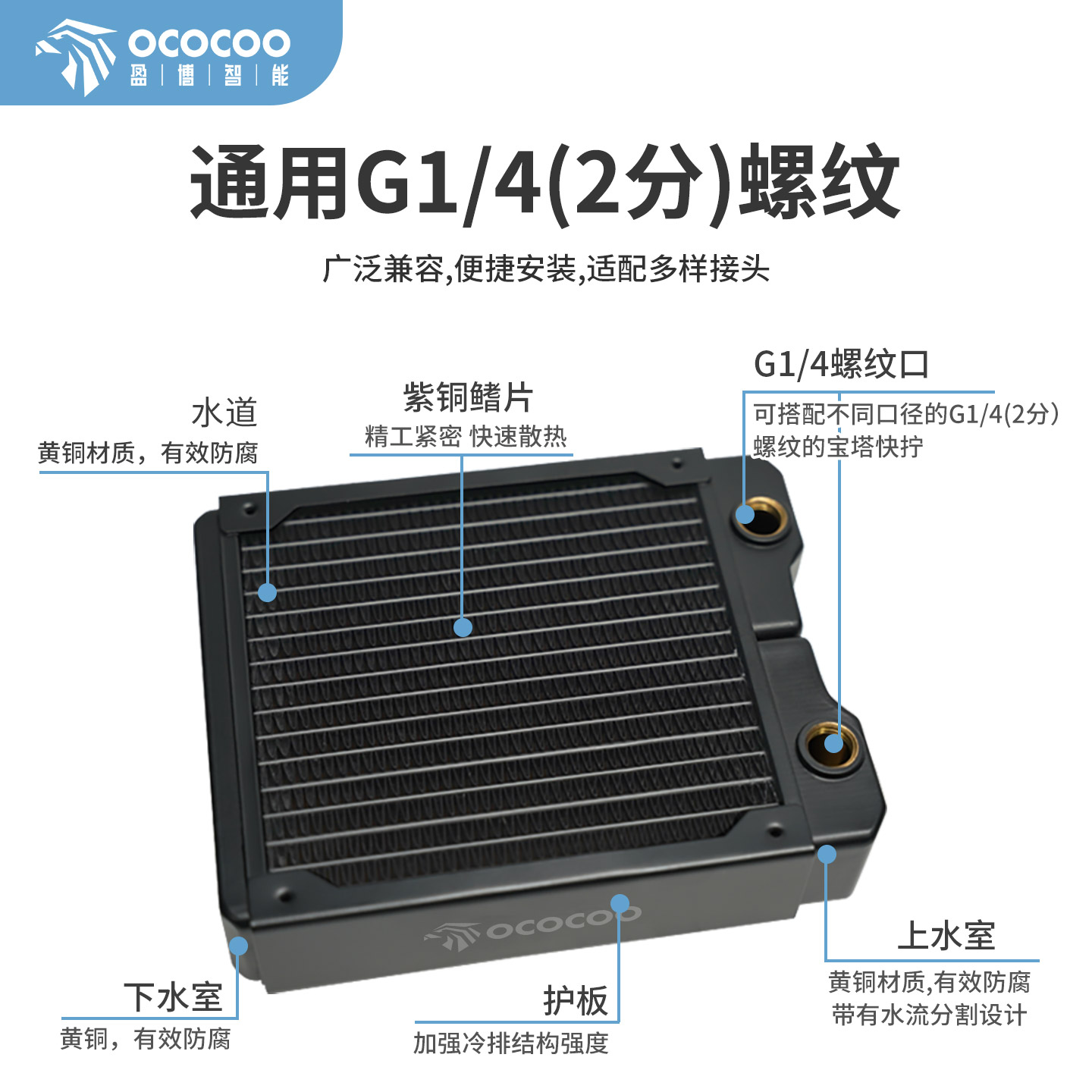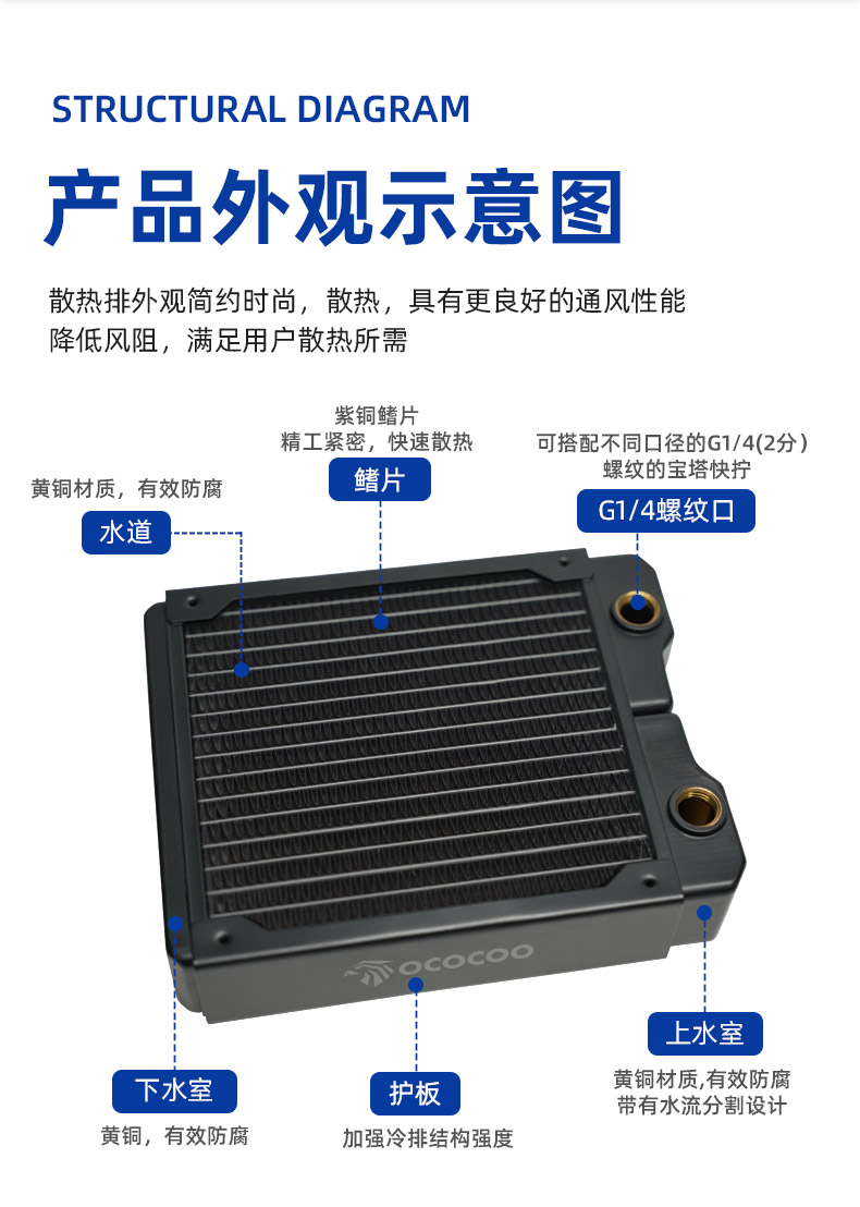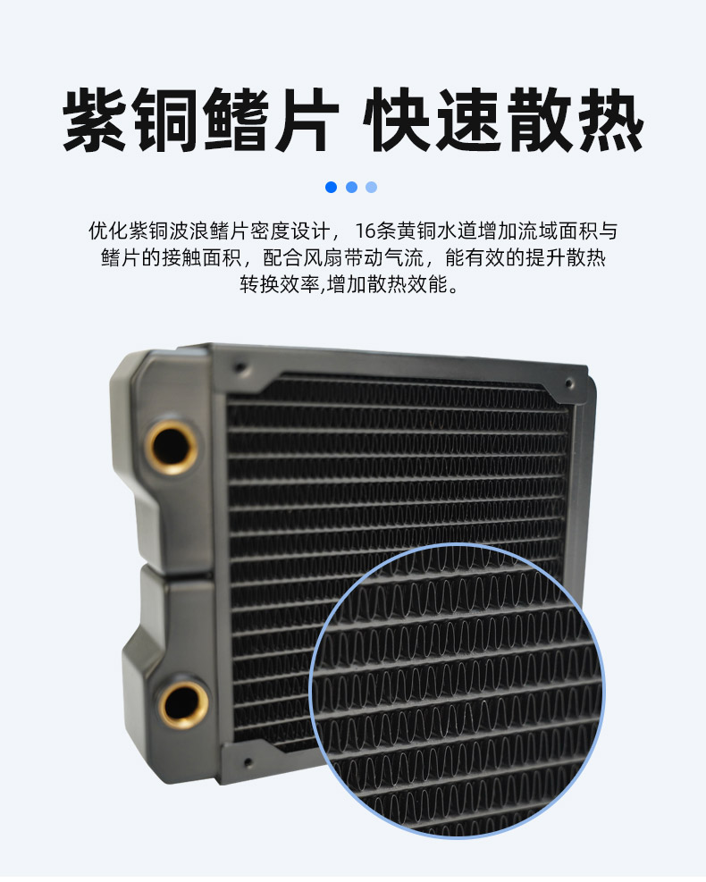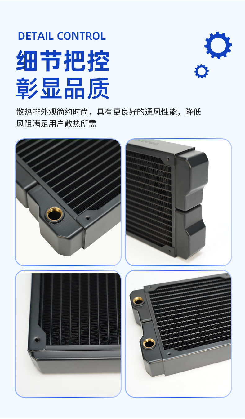 鳍片快速散热,水道采用优质黄铜打造,导热性能卓越,耐腐蚀性强,