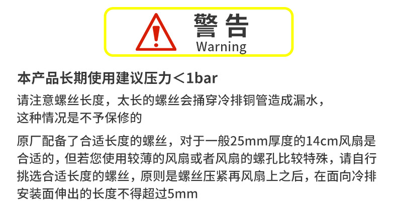 确保长时间,冷排采用一体焊接技术,不仅增强了铜冷排的结构强度,