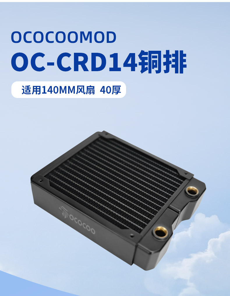 盈博OC-CRD14冷排140mm水冷排加厚40mm厚水冷排散热紫铜