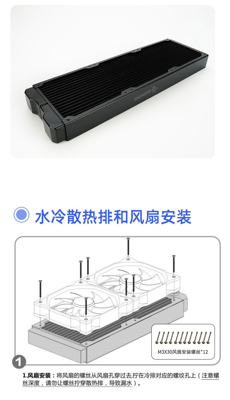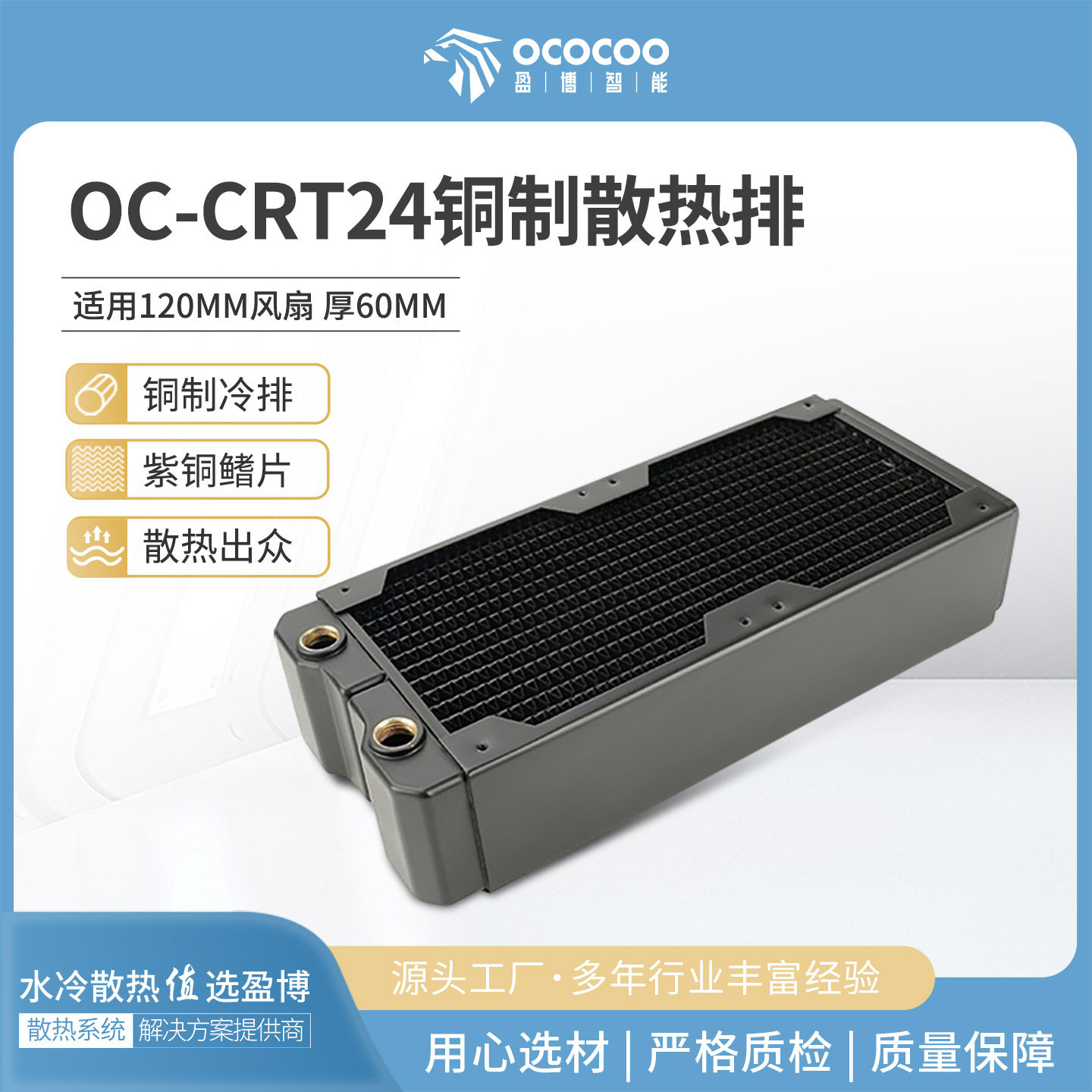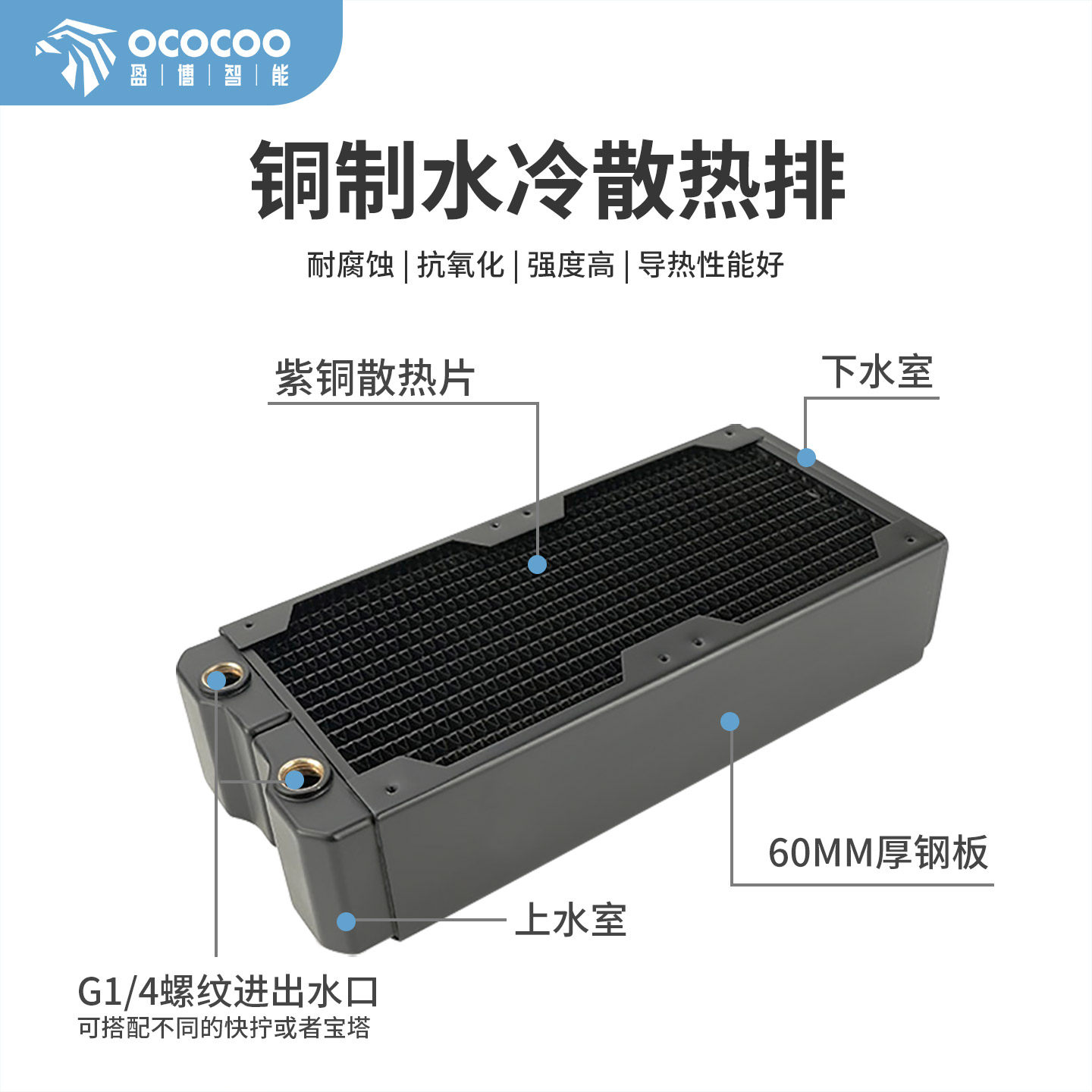 盈博240铜排水冷散热排,OC-CRT24适用120风扇*2加厚60MM铜排,紫铜散热片,