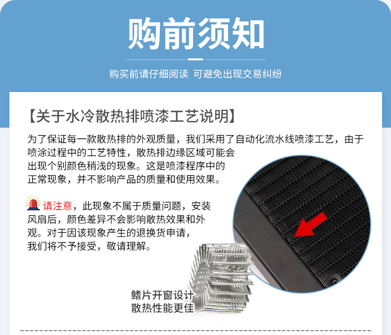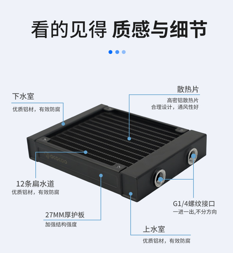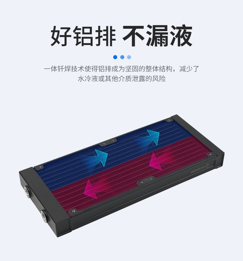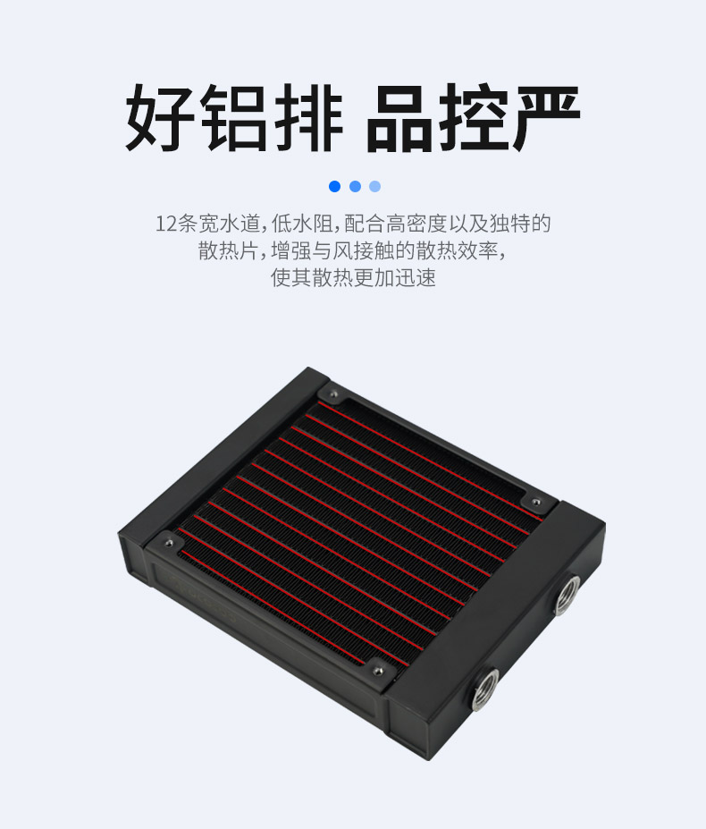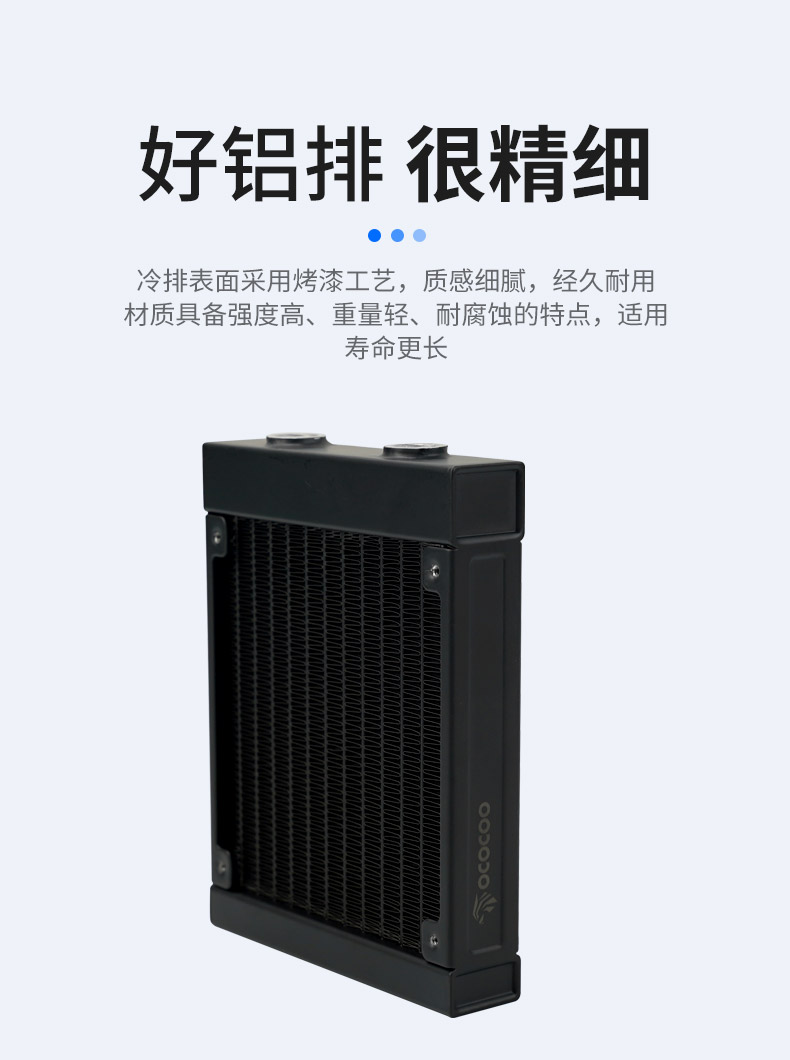 烤漆工艺 质感细腻 经久耐用。这款散热器采用了铝水排材质来制作冷排,不仅坚